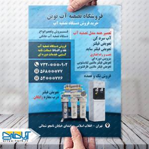 برای توسعه کسب‌وکارتان و جلب اعتماد مشتریانی که به دنبال آب سالم هستند، به ابزارهای تبلیغاتی حرفه‌ای نیاز دارید. با جستجو در این دسته‌بندی و <a href="#">دانلود فایل گرافیکی</a> از وب‌سایت آریاطرح، به مجموعه‌ای از طرح‌های مدرن و کاربردی دسترسی خواهید داشت که فرآیند تبلیغات شما را تسریع می‌کنند. همین حالا طرح مورد نظر خود را انتخاب کرده، اطلاعات فروشگاه یا خدمات فنی خود را جایگزین نمایید و با خیالی آسوده از کیفیت چاپ، گامی موثر در جهت افزایش فروش سیستم‌های **تصفیه آب** بردارید.