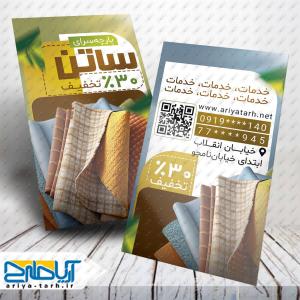 خدماتی در این دسته بندی انواع طرح لایه باز کارت ویزیت پارچه سرا را میتونید مشاهده و بصورت خرید تکی و یا اشتراکی دانلود نمایید.